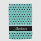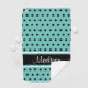 Light Teal Black Polka Dot Stripe Script Name Golf Towel