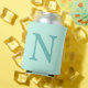 Light Teal Initial Letter Trendy Pastel Mint Blue Can Cooler