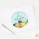 The design features a noble shimmery wavy gold decoration with soft glitter stars and a light teal background.
