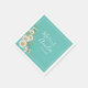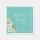 Pretty wedding paper napkin features watercolor white daisies corner on light teal background with white customisable text blocks in modern fonts