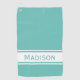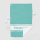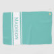 Play golf in style with this personalised golf towel. This design has a solid light teal background colour with white stripes and a modern font. This is a terrific gift for women and girl golfers playing in golf tournaments or recreational golf. It's also a lovely gift for golf coaches and instructors. The name and colour can be customised in the personalisation options. Change colours to your favourite combination or match your golf bag or team colours.