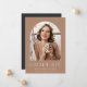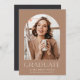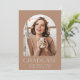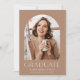 Elegant photo graduation announcement features a vertical or portrait orientated photo in a unique arched layout, on a light terracotta earth tone background. "Graduate" appears beneath, along with your graduate's name and school or college. Add a personal message to the back, along with an additional photo.