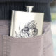 The product is a good size and came exactly as it was pictured. The lid is not attached to the flask, which could be dangerous on drunken nights... The print came out surprisingly well and looks very sharp. Would definitely recommend.
