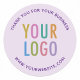 Personalise our round business thank you stickers with your company logo and custom text. These are professional scratch resistant stickers printed on acid-free paper. You can customise the words "Thank You for Your Business" to your own message in your preferred language. Available in a glossy or matte finish as 3 inch or 1.5 inch stickers. Designed in light purple and other colours (all colours are customisable). Low minimum order quantity and no setup fee.