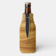 A bottle cooler with a photograph of a wooden panel showing the wood grain.
