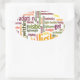 Word Cloud Format: The unique arrangement of words in different sizes and orientations visually represents the frequency or importance of the terms, enhancing the dynamic feel of the artwork.