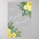 Light Yellow & Grey Peony Rose Floral Wedding Poster