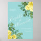 Light Yellow & Teal Aqua Rose Floral Wedding Poster