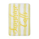 Sunshine Calls is written in bright sunny yellow. Pretty light yellow and white horizontal striped pattern. Cool trendy bathmat pattern with a beach vibe for the warmer spring and summer months for decor fun. Original Artwork Design © TamiraZDesigns.