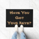 This fun doormat has a question printed in large letters to remind you to collect your keys as you leave the home "Have You Got Your Keys?" is the question you'll see as you go to open your door. Th gentle reminder will jog your memory to double check for your keys before you slam the door and lock yourself out, it's also a quirky and fun doormat to have in your home. This is a customisable doormat, you can choose the colour and personalise it with your own text if you wish to.