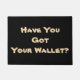 This fun doormat has a question printed in large letters to remind you to check that you've got your wallet or purse as you leave the home "Have You Got Your Wallet?" is the question you'll see as you go to open your door. Th gentle reminder will jog your memory to double check your bag or pockets for your wallet before you leave your home, it's also a quirky and fun doormat to have in your home. This is a customisable doormat, you can choose the colour and personalise it with your own text if you wish to.
