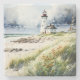 Protect your surfaces in coastal chic style with this beautifully crafted stone coaster, showcasing a serene watercolor scene of a lighthouse along a rocky coast. Accented with delicate beach grass and a soft sandy shore, this nautical design captures the quiet charm of oceanside living. The natural stone texture adds rustic elegance, making it a perfect addition to coastal home accents and maritime-inspired decor. Functional and decorative, this coaster brings seaside tranquillity to coffee tables, patios, or beach house kitchens — a subtle, stylish nod to your love of the sea.