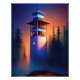 This stunning nocturnal image captures the beauty and magic of a tower surrounded by trees. The muted colours and soft brushstrokes create a sense of peace and tranquillity, while the mysterious atmosphere invites the viewer to explore the hidden secrets of the forest.