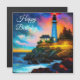 Beautiful white Lighthouse and keepers house sitting high on a rocky hill at Sunset