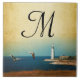 Beach Lighthouse Light house bird seagulls sea ocean house Monogram Initial Decorative Display Tile Personalised