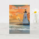 Wish a happy birthday and send your congratulations with this cute religious card. A beautiful beach during the sunset with a lighthouse on the rocks surrounded by seagulls next to the sea.
