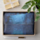 A lighthouse a stormy night with dark clouds and rain. A faint light can be seen in the lighthouse tower. A dark blue image covered with drops like raindrops or ocean spray. The lighthouse, a symbol of hope in the darkest of nights, guidance, direction and help. A safe journey or harbour.