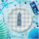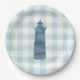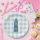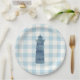 Lighthouse Nautical Blue Gingham Check Pattern Paper Plate