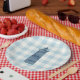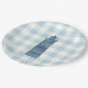 Our lighthouse blue gingham check paper plates are perfect for baby showers, birthdays, or summer parties.