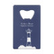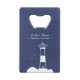 Elegant & simple navy blue bottle opener with an illustration of a lighthouse!