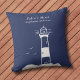 Elegant & simple navy blue pillow with an illustration of a lighthouse!