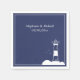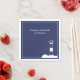 Elegant & simple navy blue napkins with an illustration of a lighthouse for a marine and nautical theme wedding!