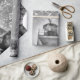 Lighthouse ocean nautical black and white rustic coastal vintage decoupage craft wrapping paper roll. Photo art of Killarney, Ontario Canada. Rocks in foreground, old lighthouse against texture sky. Beautiful retro style printed design gift wrap. Image copyright Marg Seregelyi Photography.