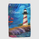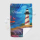 Beautiful red and white striped Lighthouse on a rocky outcropping