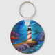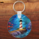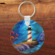 Beautiful red and white striped Lighthouse on a rocky outcropping