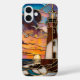 Warm and elegant, this phone case features a lighthouse by the ocean at sunset in a stained-glass–inspired design with rich colors and clean composition.