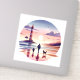 This tranquil coastal design captures a serene sunset moment where a parent, child, and dog stroll along reflective wet sand, framed by a glowing lighthouse in the distance. The circular composition and soft pastel tones evoke calm and nostalgia, while birds glide through a dreamy sky of lavender and coral hues. The symmetry of reflections enhances the peaceful ambiance, making it a perfect visual metaphor for cherished memories and quiet connection. Ideal for evoking feelings of warmth, family, and coastal escape, this scene blends painterly digital illustration with a minimalist, modern aesthetic. Display it as a daily reminder of life’s simple joys and nature’s gentle rhythms. AI generated artwork.