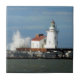 Ceramic tile decorated with lighthouse with wave, adds a nautical touch to home decoration! Interesting accent piece for home or office.