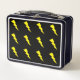 Part of TheFotoScope Original Graphic Design Collection. Lightning Bolt No.2 Metal Lunch Box. Perfect for the kid's packed lunches for school, a family trip or a day at the beach. The lightning bolt design hints at a touch of the superhero. Dimensions: 17.2 cm length x 21.9 cm width x 9.5 cm height. Made of durable and food-safe tin plate. Food contact-safe interior material. Collapsible black plastic handles. Available in in different colours, which you self-select.