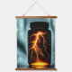 Cool digital art wall tapestry features a dramatic glowing lightning strike inside a closed jar.