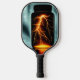 Cool digital art pickleball paddle features a dramatic glowing lightning strike inside a closed jar. The proverbial lightning in a bottle...just like your swing.