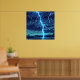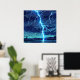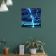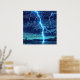 Artwork of lightning striking a lake. This intense artwork depicts a dramatic lightning strike illuminating a dark sky and a turbulent lake below. The brilliant blue-white bolts crackle across the canvas, their powerful glow reflecting on the water's surface. This piece embodies the wild energy of nature, making it a striking and unforgettable addition to any room. The reflections on the water add depth and intensity, making this a powerful statement piece that captures a fleeting, magnificent moment in nature. This artwork captures the intense beauty and energy of a storm, rendered in a vivid and impactful style. This piece can be customised, printed, and or downloaded.