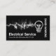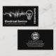 A luminous electrical lightning streaks across the darkness and powers up a silver bulb logo you can use. To the right is your prestigious name with the business name "Electrical Service" and the contact details near the base.