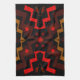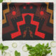 This brilliantly coloured American MoJo kitchen towel features a primitive abstract pattern of lightning and suns in earth tones of orange, red, black and brown.