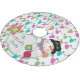 Lights Happy Snowman personalised holiday tree skirt features a white background with strings of coloured tree lights, a pink orb snowflake star, a snowman with striped scarf, and a white banner you can customise with your name. This colourful Lights Happy Snowman design holiday tree skirt makes a great gift or get one for yourself to enjoy for years to come!