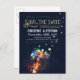 Special and unique save the date postcard with beautiful whimsical mason jar with glowing lights - fireflies. Modern yet vintage save the date perfect for rustic country wedding themes.