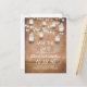 Rustic wooden background save the date postcard with hanging lights mason jars.