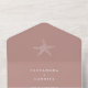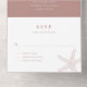 This wedding invitation design is a perfect blend of elegance and beachy vibes. The main feature of the invitation is a small white starfish motif that sits gracefully in the centre of the terracotta-coloured background. The starfish motif is intricately designed and adds a touch of nature to the invitation. The terracotta colour of the background is warm and inviting and sets the tone for an earthy beachside wedding.