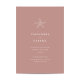 This wedding invitation design is a perfect blend of elegance and beachy vibes. The main feature of the invitation is a small white starfish motif that sits gracefully in the centre of the terracotta-coloured background. The starfish motif is intricately designed and adds a touch of nature to the invitation. The terracotta colour of the background is warm and inviting and sets the tone for an earthy beachside wedding.