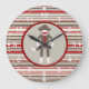 Like a Boss Sock Monkey with Tie on Red Stripes Large Clock
