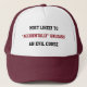 This funny hat says "Most likely to accidentally unleash an evil curse" on the front, and "Sorry, did I say accidentally?" on the back. It is perfect for archaeologists, historians, adventurers, or simply friends with a passion for horror... and a hidden dark side who would love to unleash ancient evils upon their enemies, of course. Or simply to see what would happen. You know you are wondering about that. So if you are an egyptologist who just opened a black sarcophagus, or a trekking aficionado who routinely get lost in dark witch infested woods, or an antiquity lover who would buy a suspiciously human-skin-like ancient book in a dark dusty book shop... at least warn your friends with this hat!