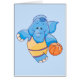 Exclusive sports theme little blue elephant basketball player holding dribbling a basketball. Personalise with your name or your favourite team or favourite quote. Makes a great gift for any sports fan Customisable background colour.