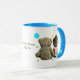 Rustic lil cowboy and teddy bear themed coffee mug with green and blue polka dots. Add baby's name in the personalise area.