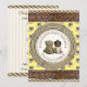 Boy's baby shower, country and western rustic style baby shower invitations. Rustic wood, baby in cowboy hat sitting with teddy bear with rope and wood details.