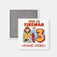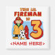 Cute firefighter third birthday design features a cute fireman, spotted dog and fire hydrant with text "This lil fireman is 3".