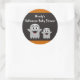 For a great way to spook up your Halloween baby shower favours, stationery or gifts use this adorable range of little ghost baby shower party stickers. The round shaped stickers offer a mummy and baby ghost as the central images on the stickers. The background colour is a dark brown dimpled design with orange strips running along the top and bottom of the stickers. The lettering has been set to white and is positioned to the top of the stickers. All the wording can be personalised with your own Little Ghost baby shower party details. Great for an It's A Baby Halloween baby shower party celebration. Find the same little ghost design on more products within the store.